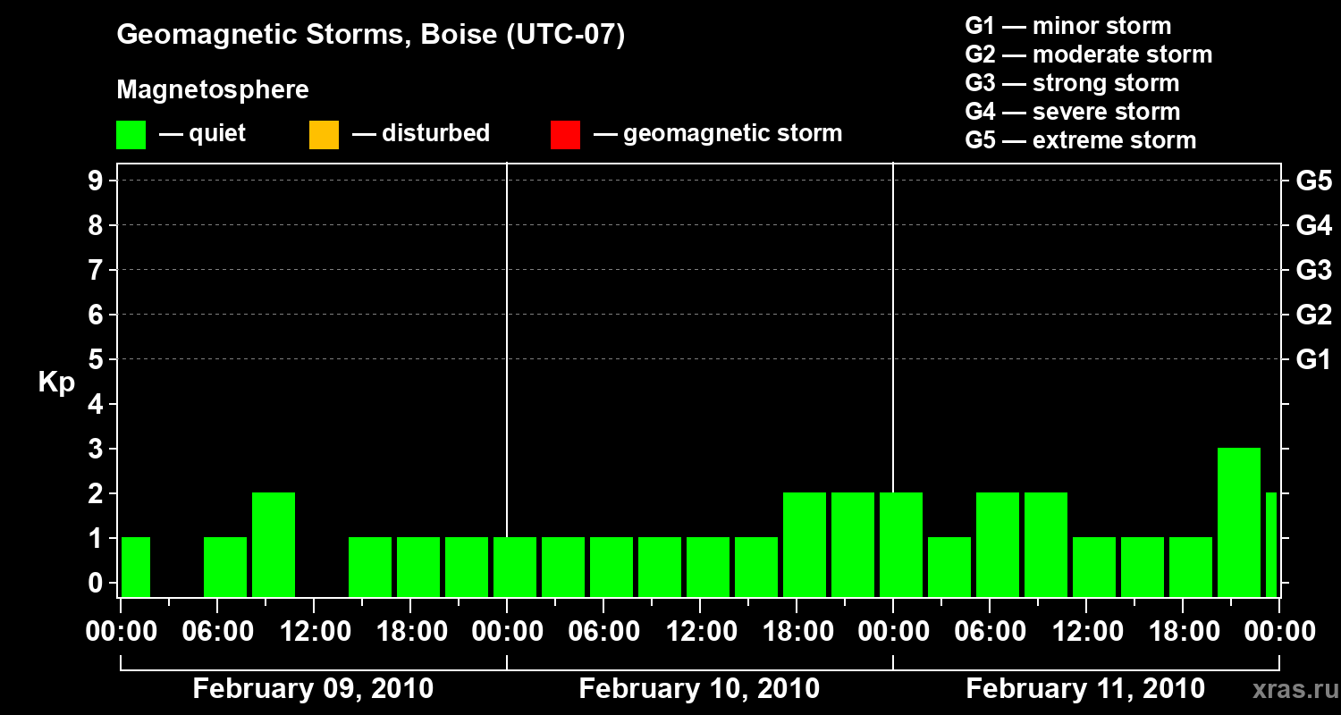 Geomagnetic storms in Boise in February 2010