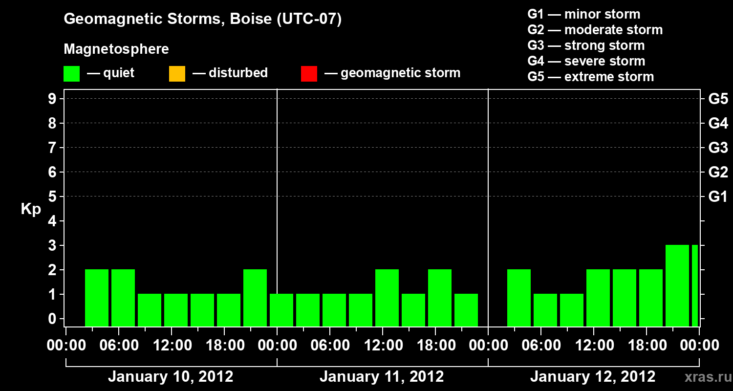 Changes in the geomagnetic index Kp from January 10 to 12, 2012 for mid latitudes