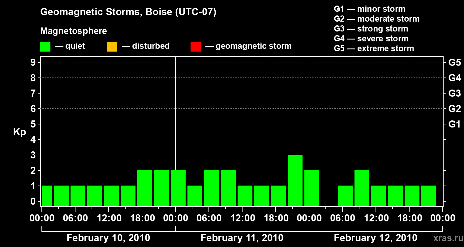Changes in the geomagnetic index Kp from February 10 to 12, 2010 for mid latitudes