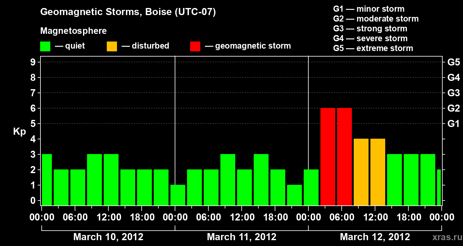 Geomagnetic storms in Boise in March 2012