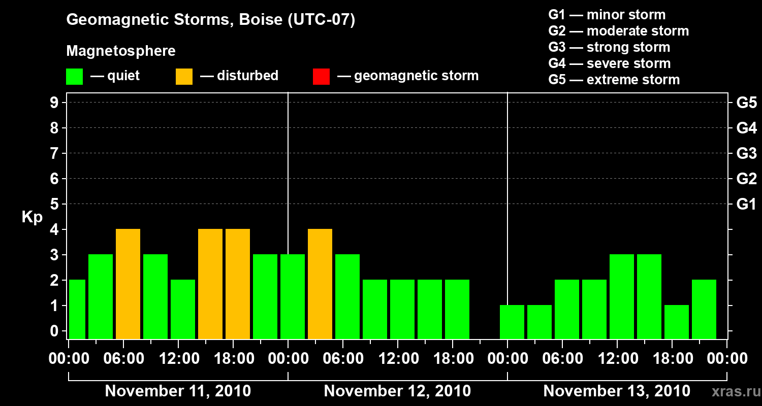 Changes in the geomagnetic index Kp from November 11 to 13, 2010 for mid latitudes