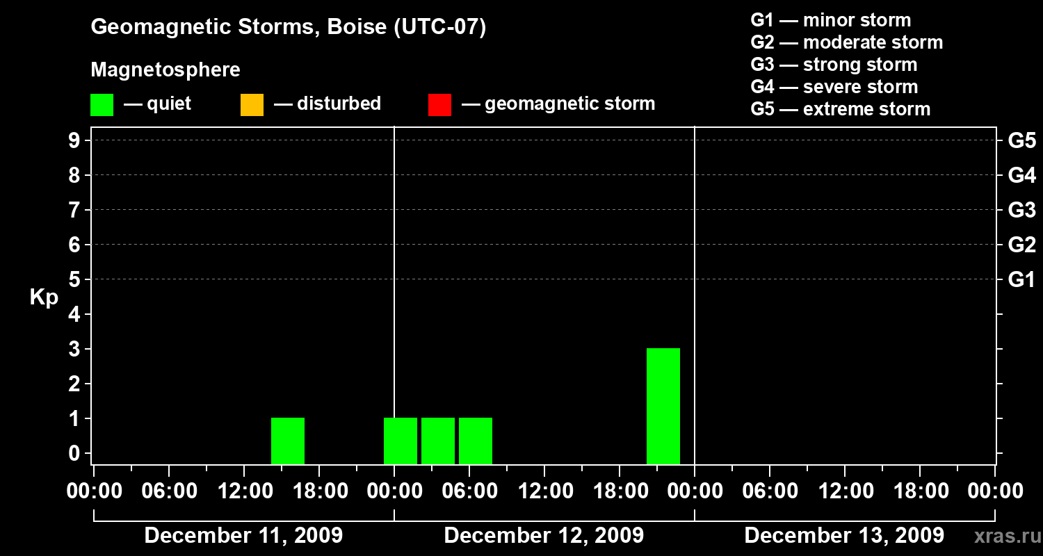 Changes in the geomagnetic index Kp from December 11 to 13, 2009 for mid latitudes