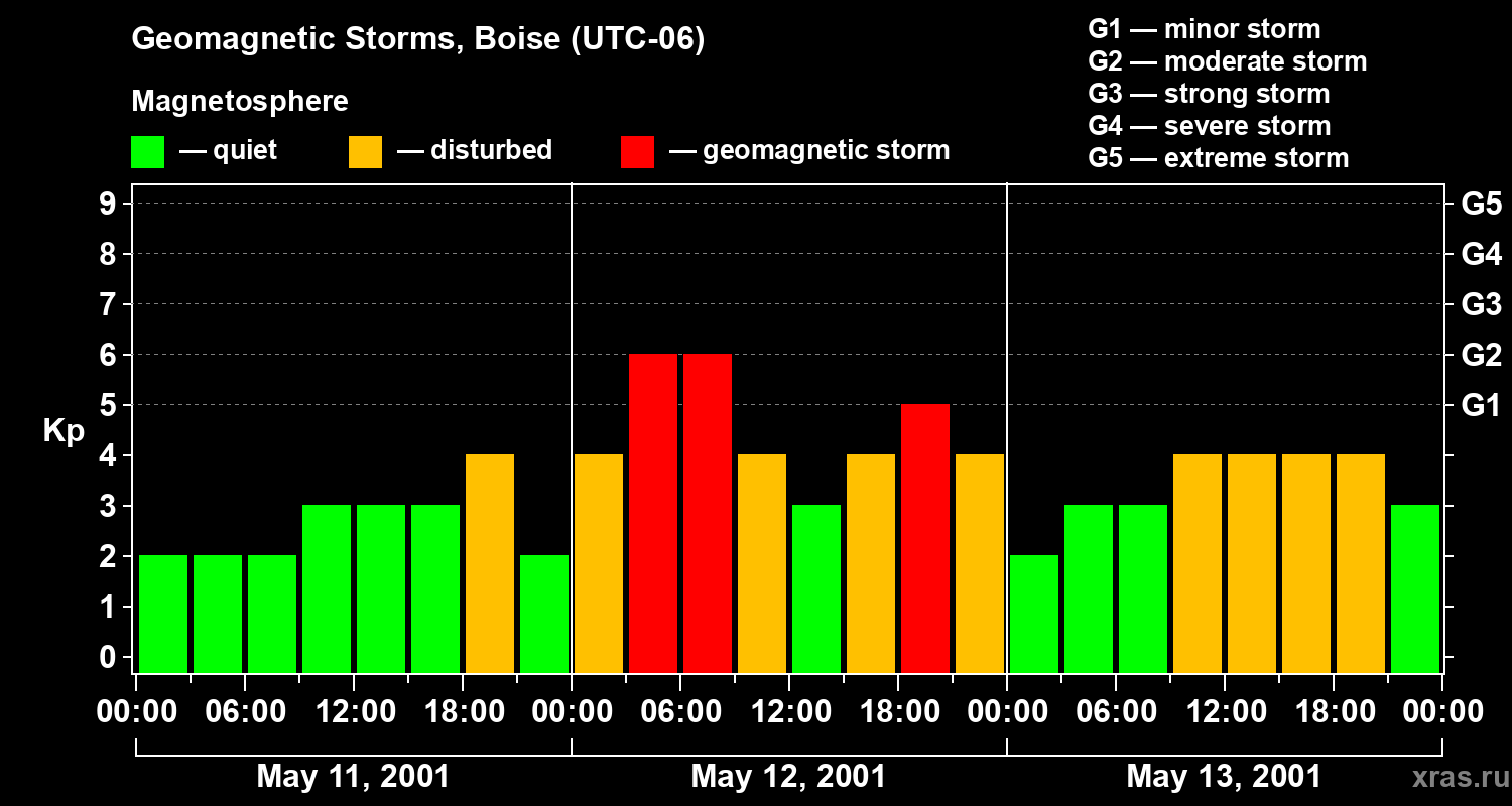 Geomagnetic storms in Boise on May 13, 2001