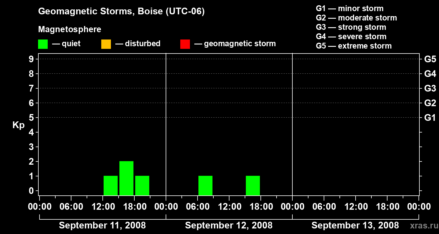 Changes in the geomagnetic index Kp from September 11 to 13, 2008 for mid latitudes