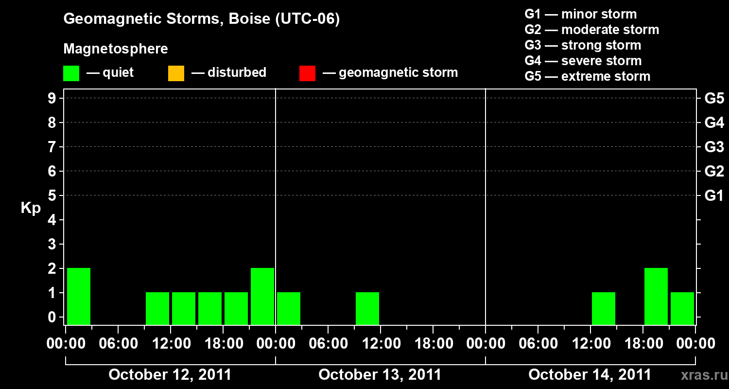 Changes in the geomagnetic index Kp from October 12 to 14, 2011 for mid latitudes