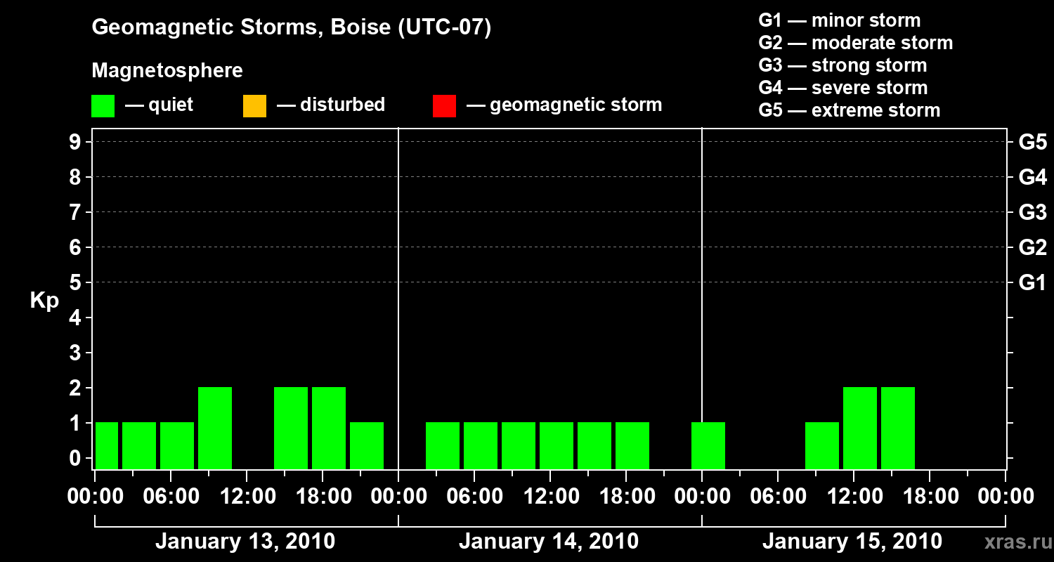 Changes in the geomagnetic index Kp from January 13 to 15, 2010 for mid latitudes