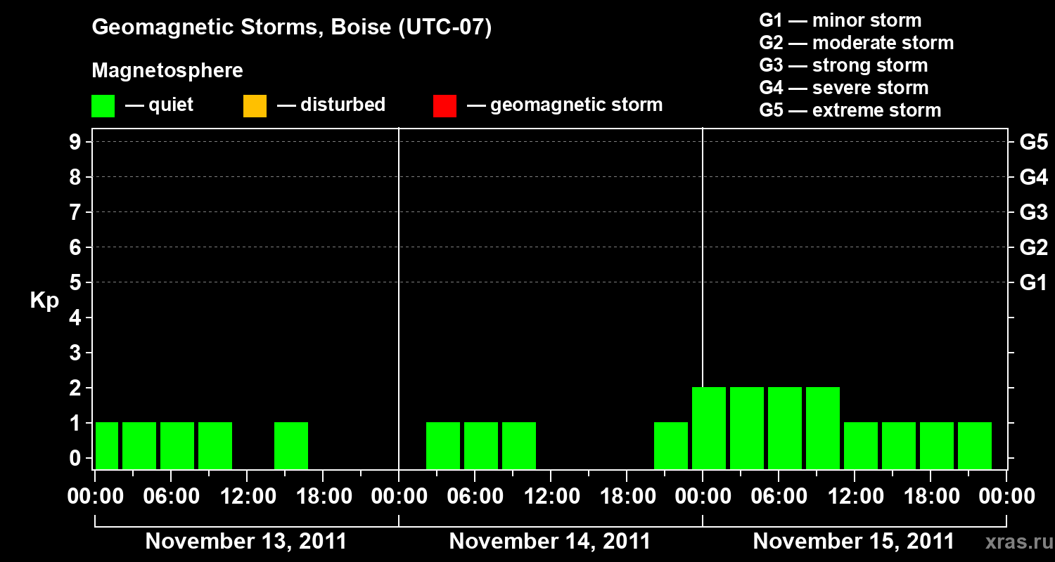 Changes in the geomagnetic index Kp from November 13 to 15, 2011 for mid latitudes