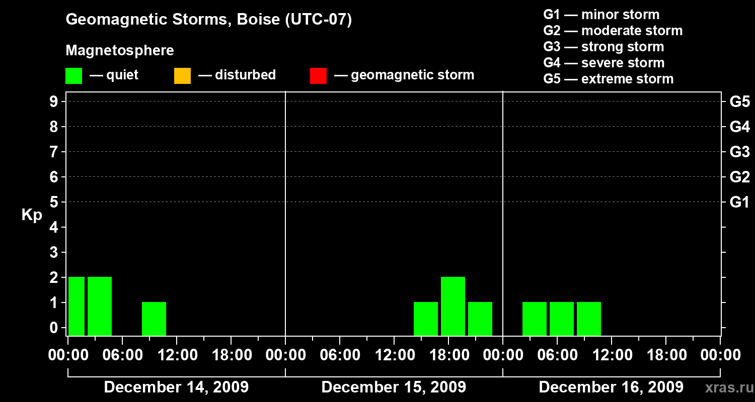 Changes in the geomagnetic index Kp from December 14 to 16, 2009 for mid latitudes