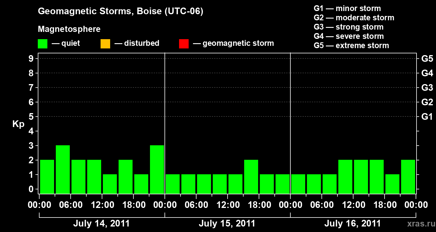 Changes in the geomagnetic index Kp from July 14 to 16, 2011 for mid latitudes