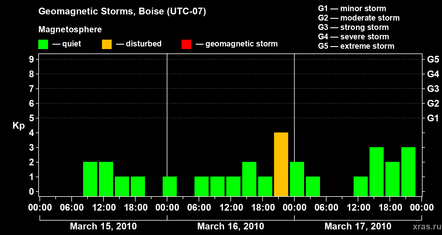 Geomagnetic storms in Boise in March 2010