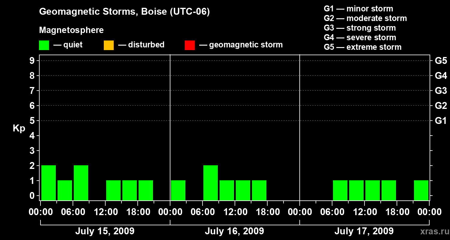 Changes in the geomagnetic index Kp from July 15 to 17, 2009 for mid latitudes