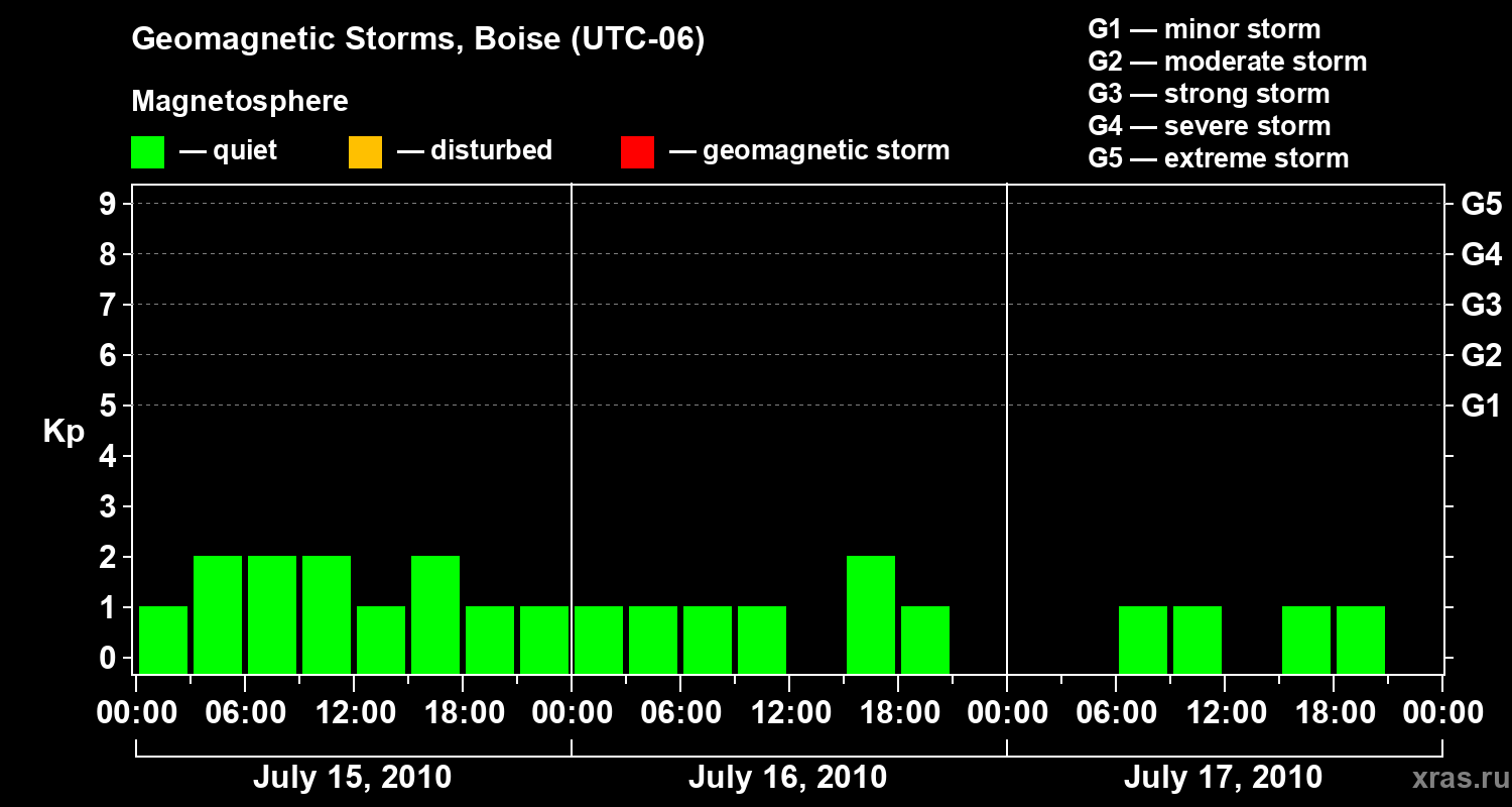 Changes in the geomagnetic index Kp from July 15 to 17, 2010 for mid latitudes