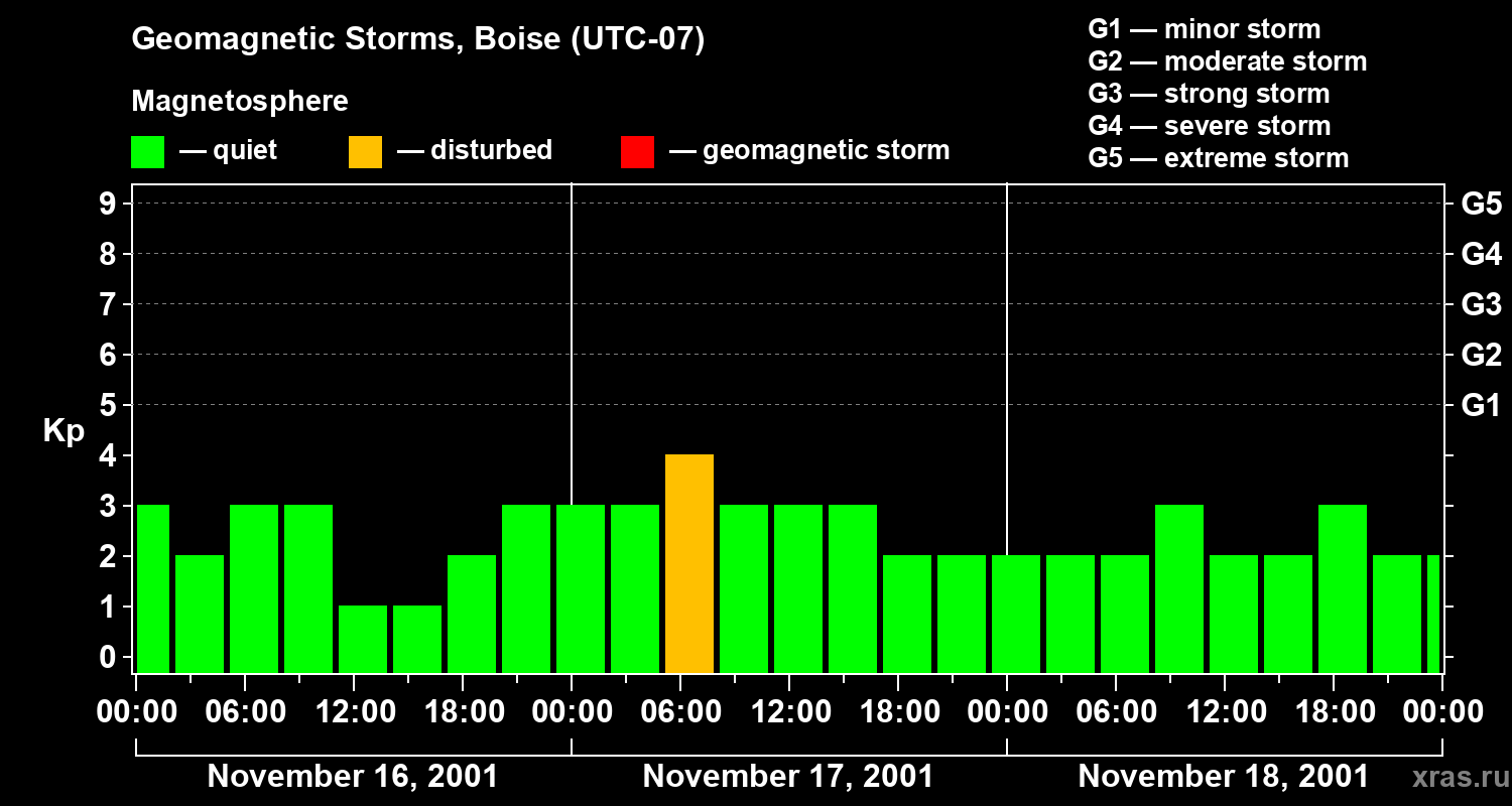 Changes in the geomagnetic index Kp from November 16 to 18, 2001 for mid latitudes