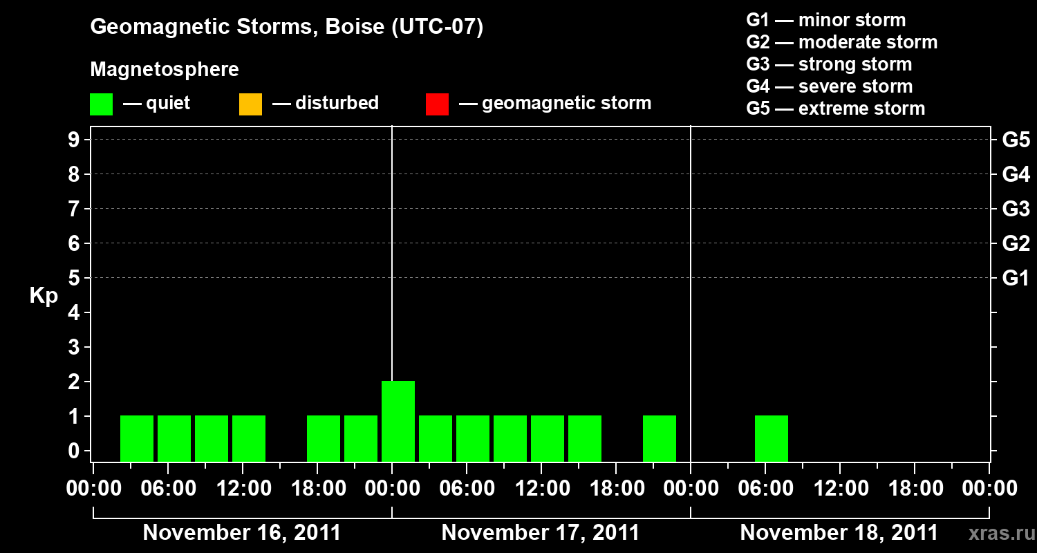 Changes in the geomagnetic index Kp from November 16 to 18, 2011 for mid latitudes