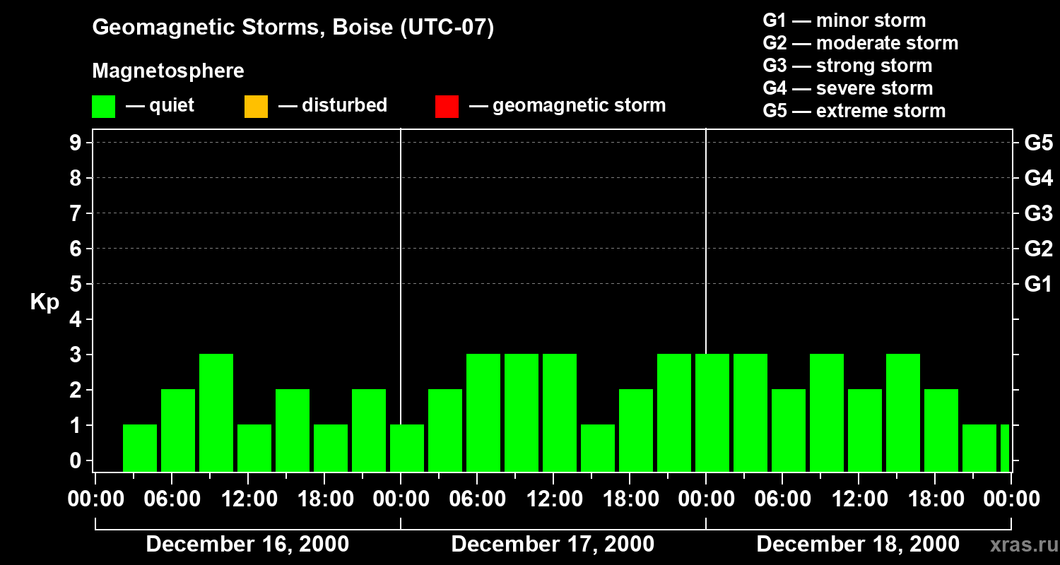 the Earth's magnetosphere was quiet (Kp = 3.00)