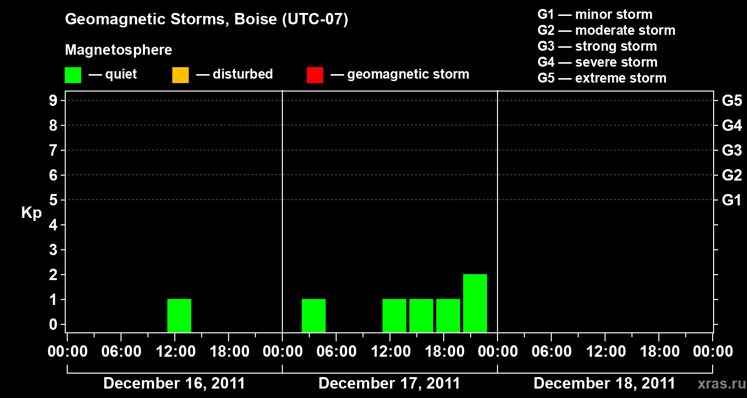 Changes in the geomagnetic index Kp from December 16 to 18, 2011 for mid latitudes
