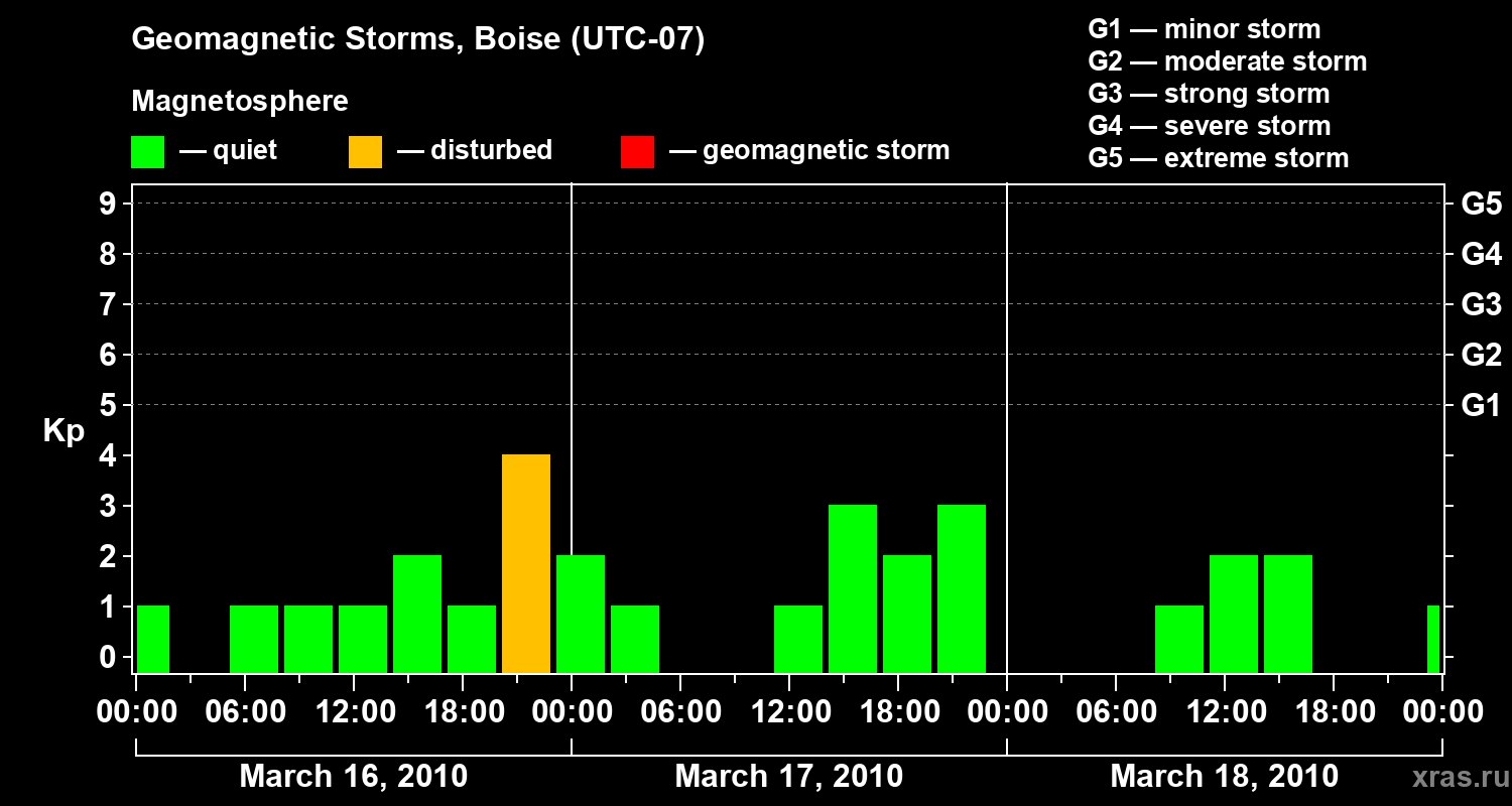 Geomagnetic storms in Boise in March 2010
