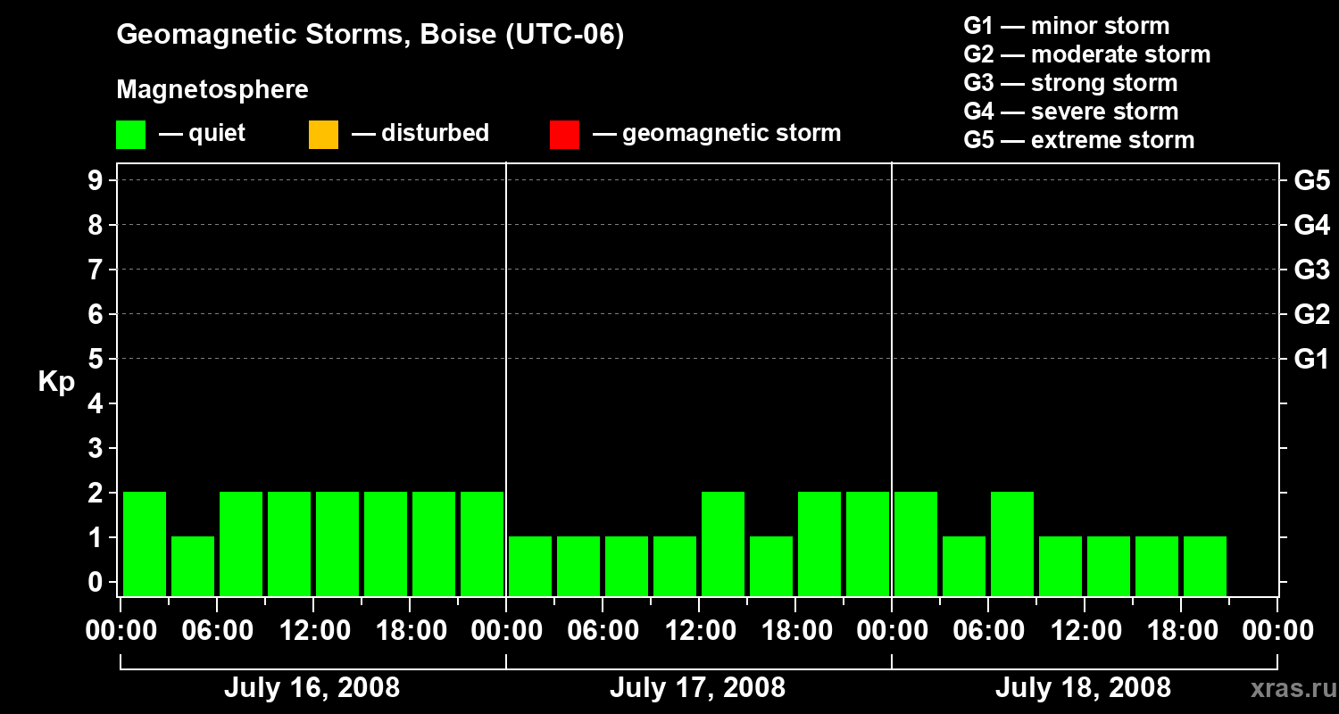 Changes in the geomagnetic index Kp from July 16 to 18, 2008 for mid latitudes