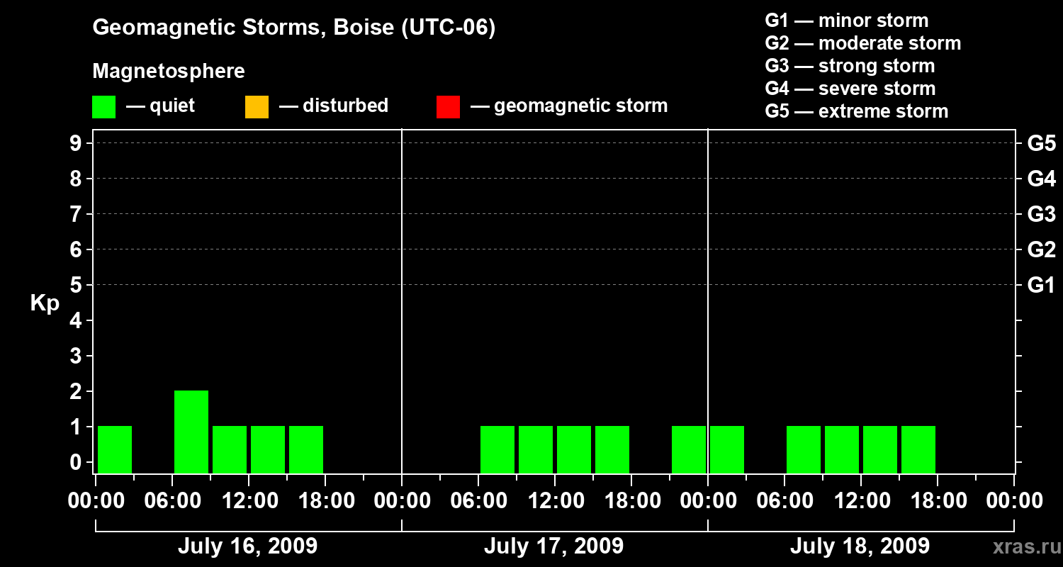 Changes in the geomagnetic index Kp from July 16 to 18, 2009 for mid latitudes