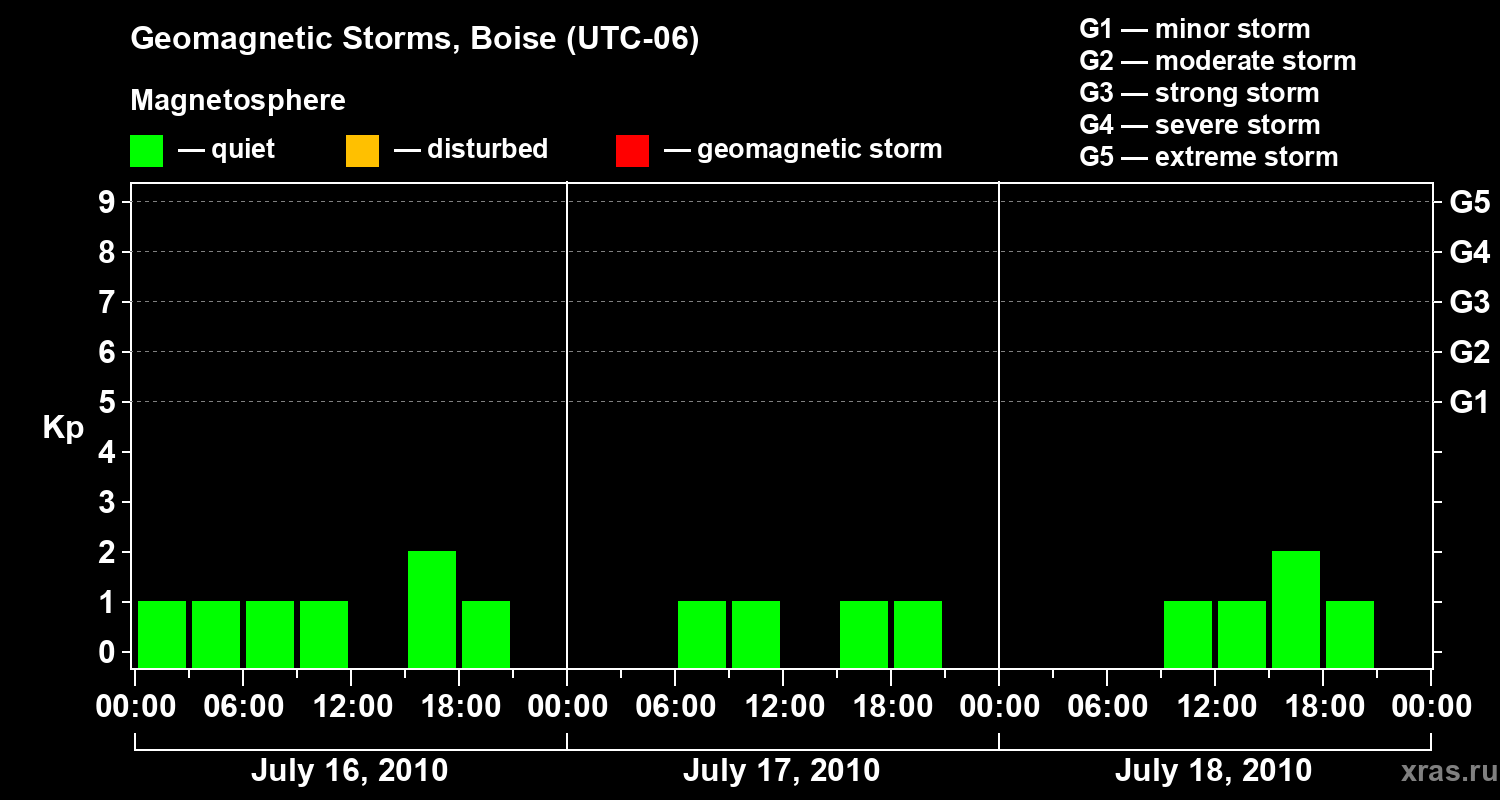 Changes in the geomagnetic index Kp from July 16 to 18, 2010 for mid latitudes