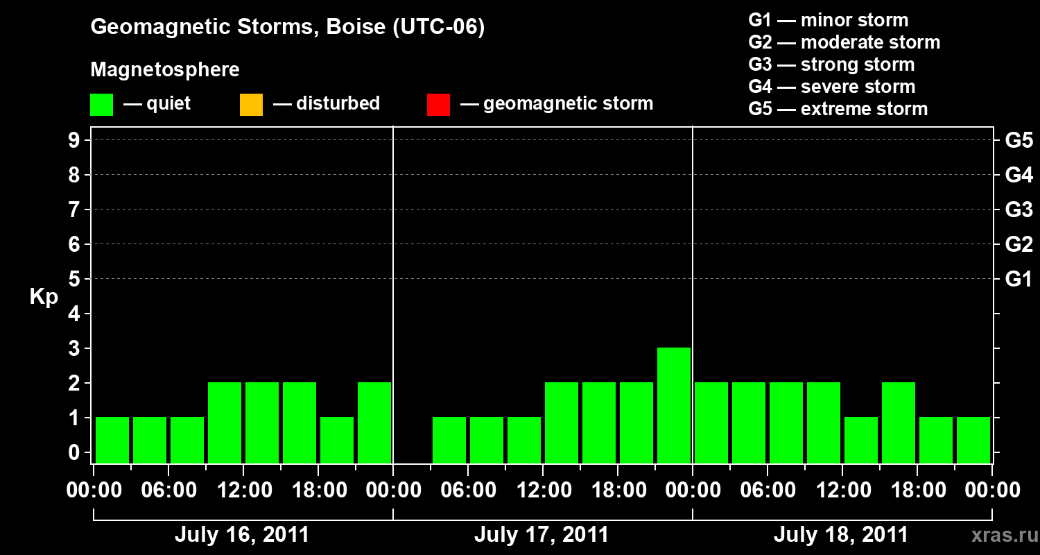 Changes in the geomagnetic index Kp from July 16 to 18, 2011 for mid latitudes