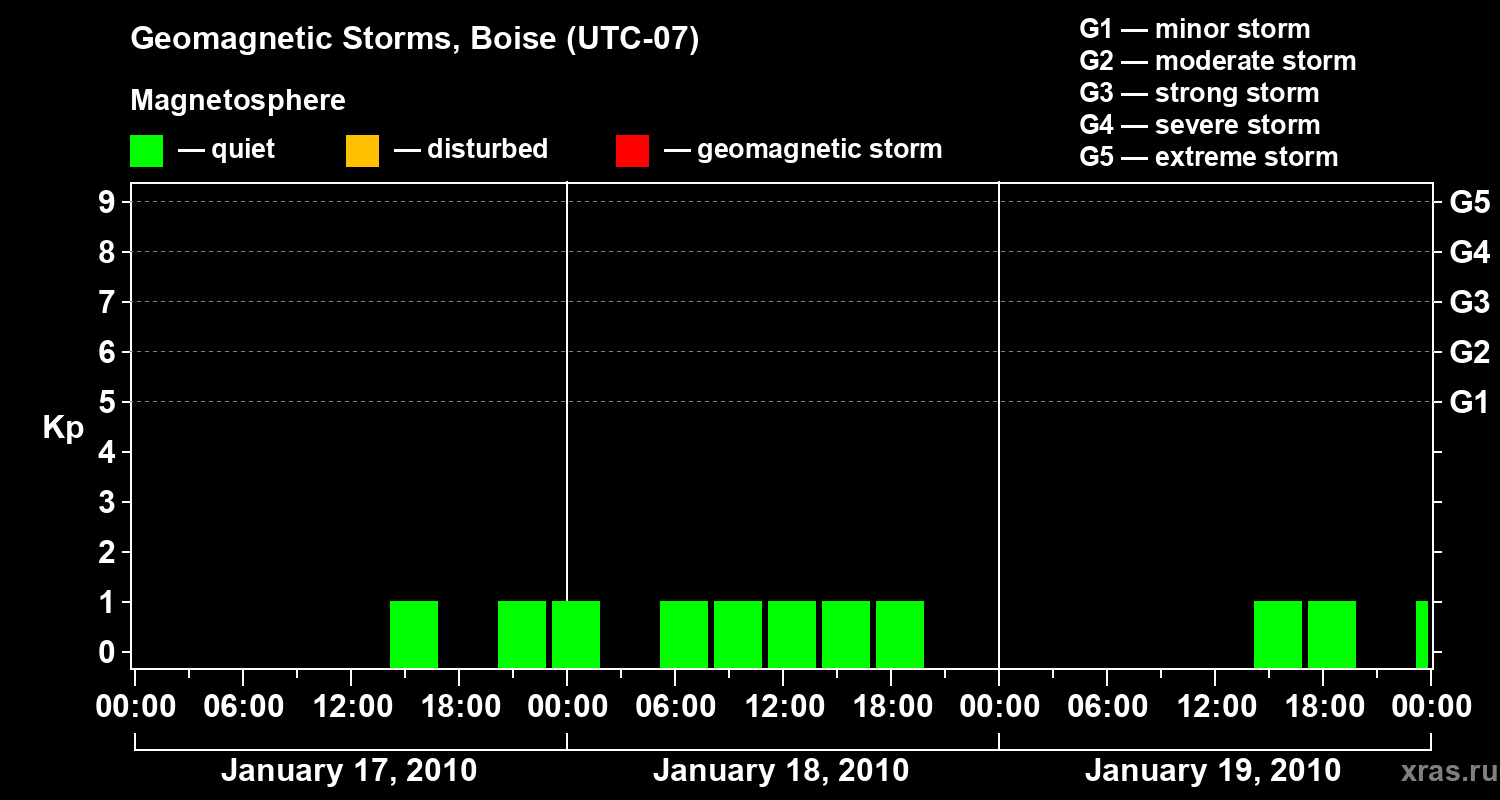 Changes in the geomagnetic index Kp from January 17 to 19, 2010 for mid latitudes