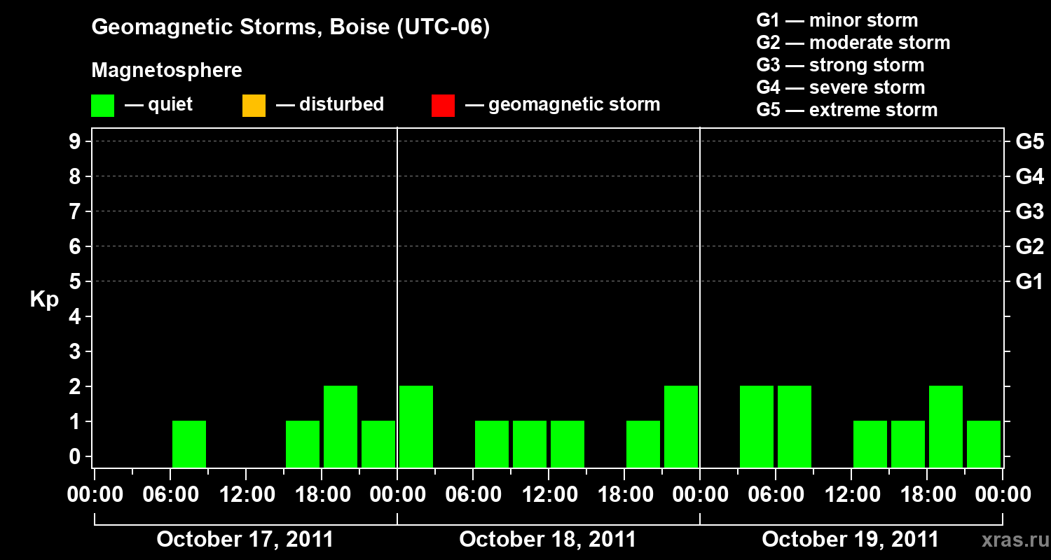 Changes in the geomagnetic index Kp from October 17 to 19, 2011 for mid latitudes