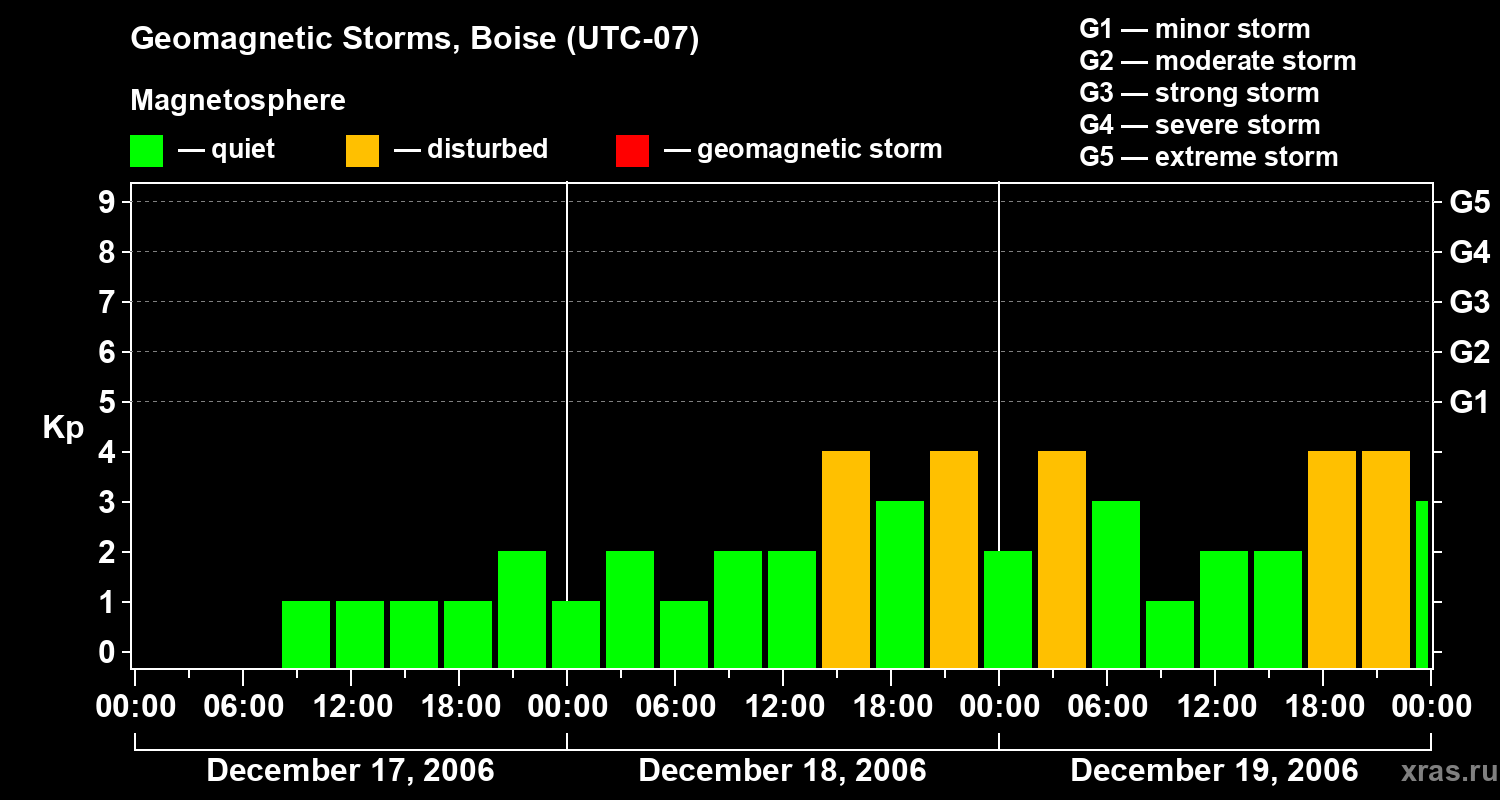 Changes in the geomagnetic index Kp from December 17 to 19, 2006 for mid latitudes