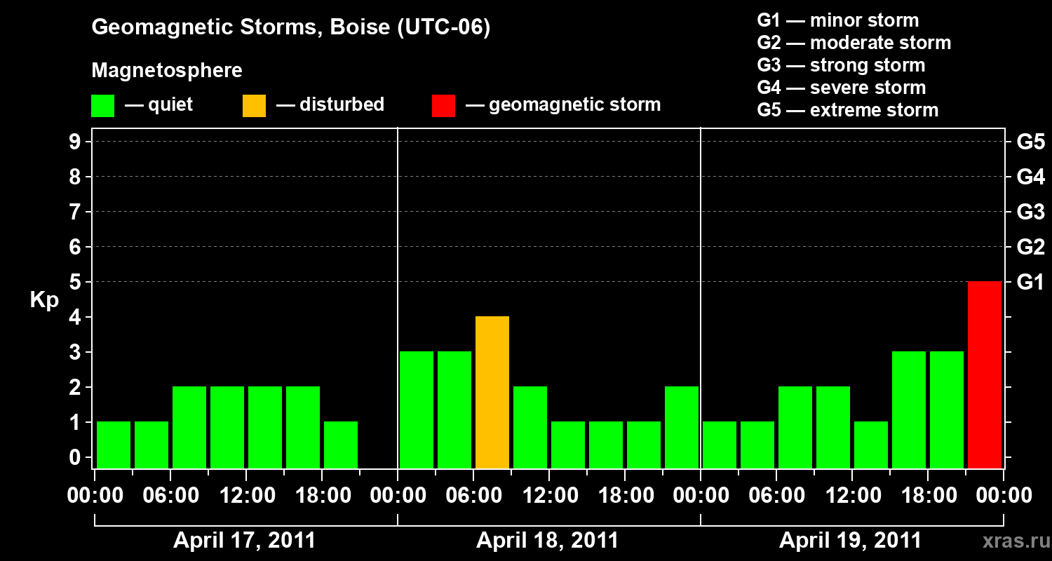 Geomagnetic storms in Boise in April 2011
