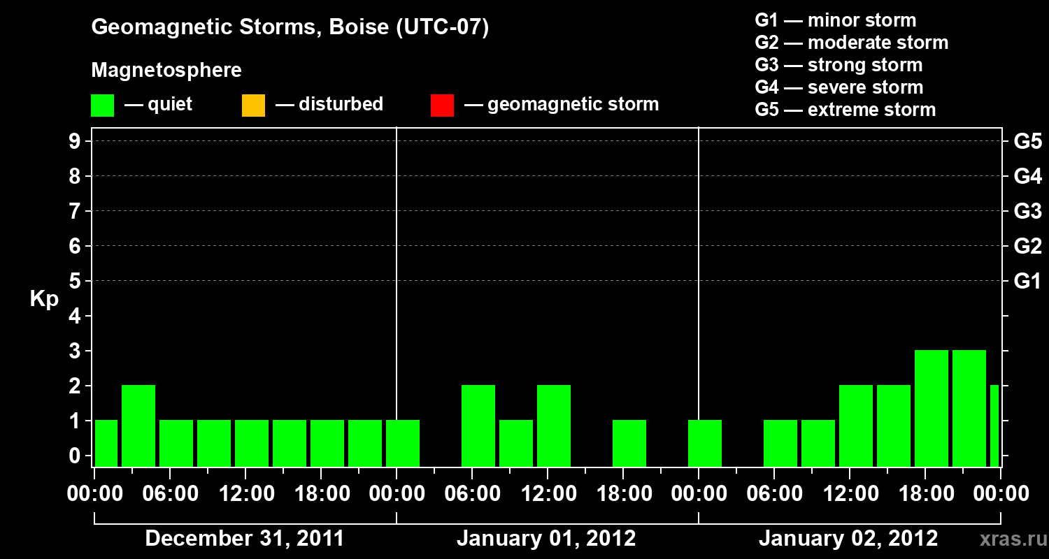 Changes in the geomagnetic index Kp from December 31, 2011 to January 2, 2012 for mid latitudes
