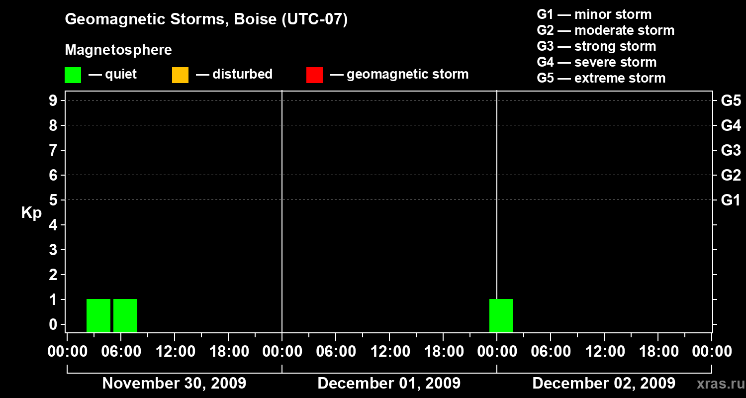 Changes in the geomagnetic index Kp from November 30 to December 2, 2009 for mid latitudes