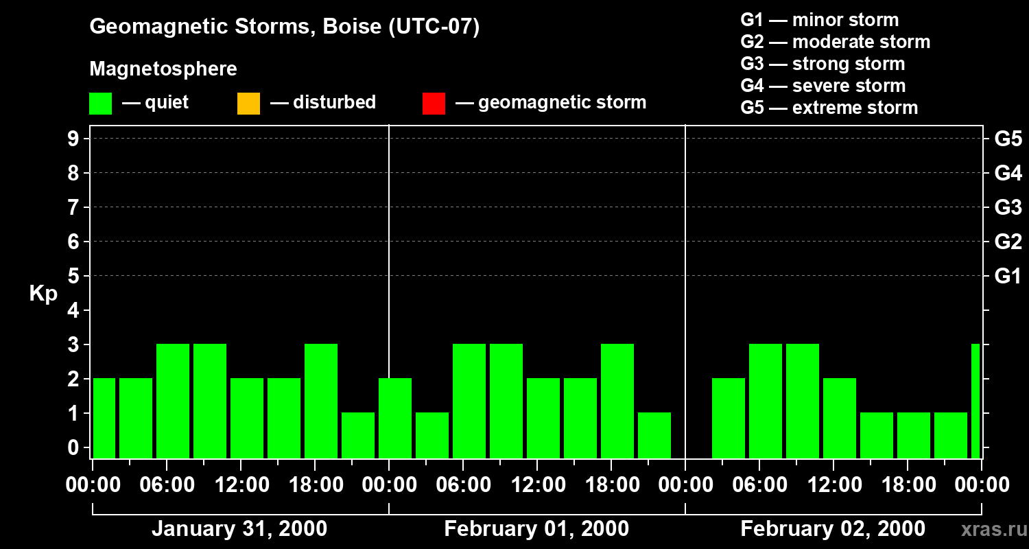 the Earth's magnetosphere was quiet (Kp = 3.00)