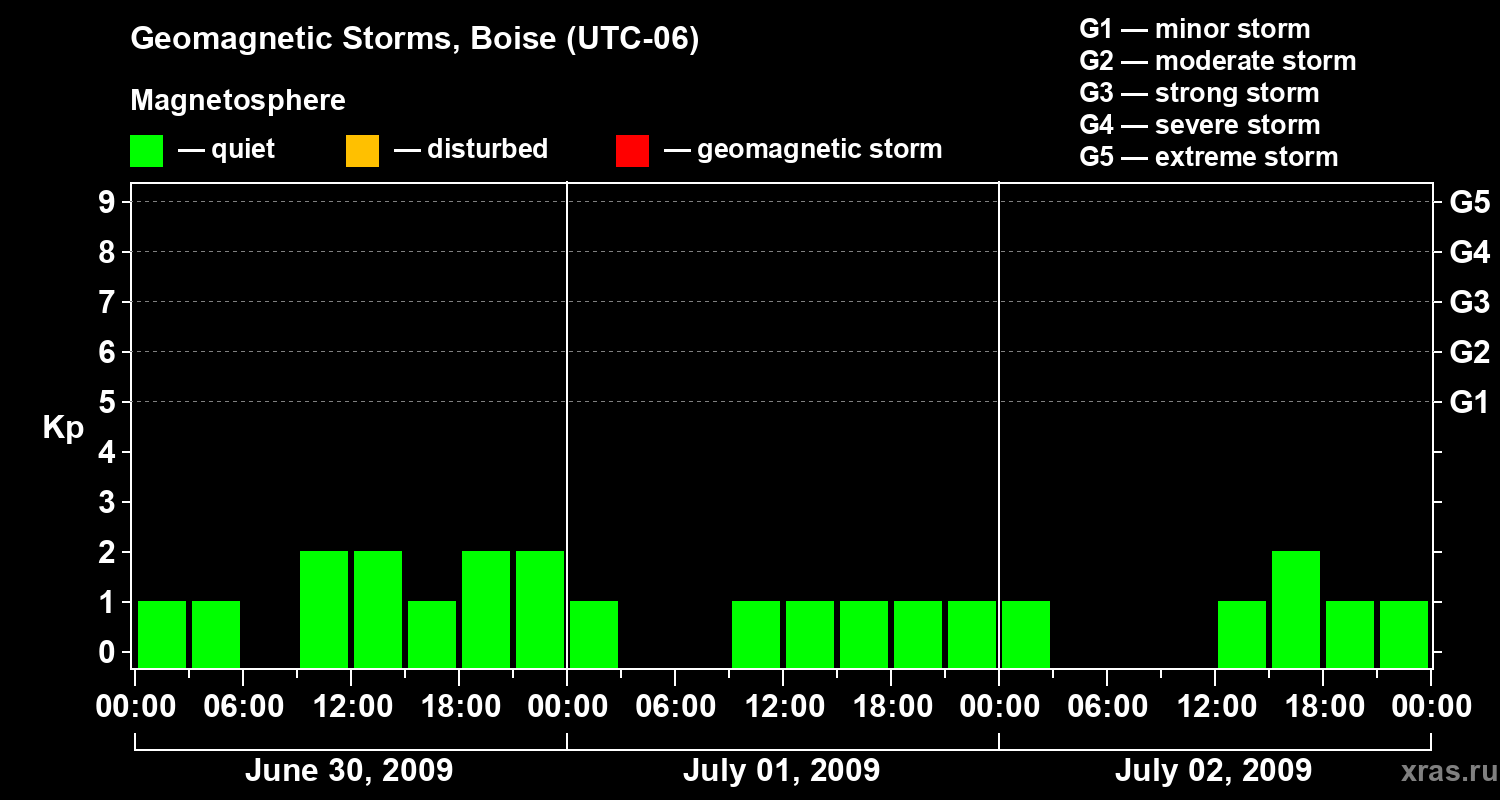 Changes in the geomagnetic index Kp from June 30 to July 2, 2009 for mid latitudes
