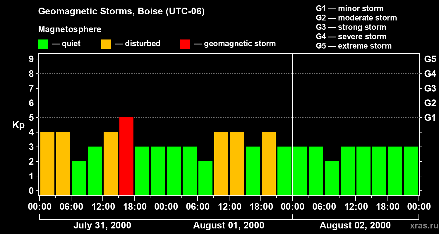 Changes in the geomagnetic index Kp from July 31 to August 2, 2000 for mid latitudes