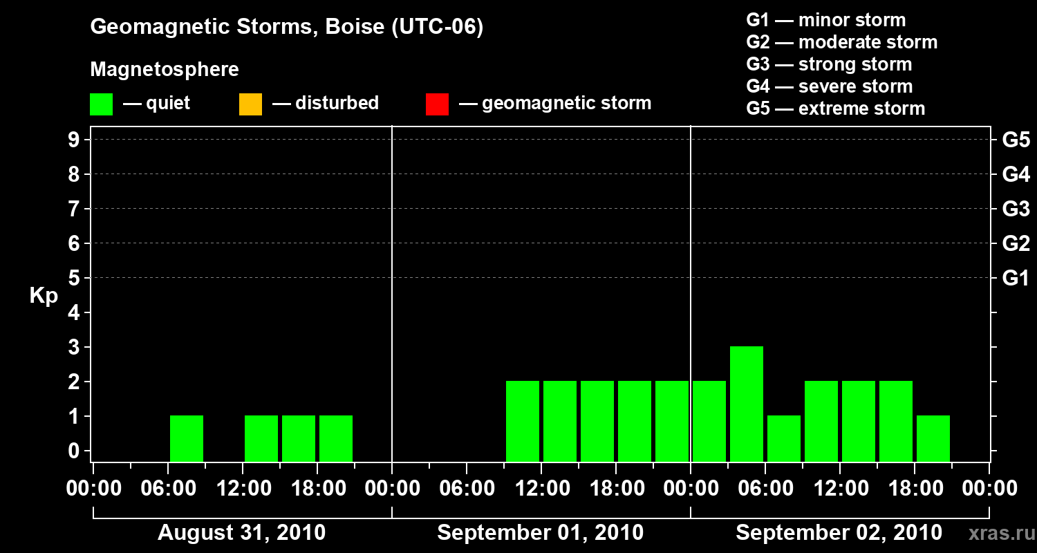 Changes in the geomagnetic index Kp from August 31 to September 2, 2010 for mid latitudes