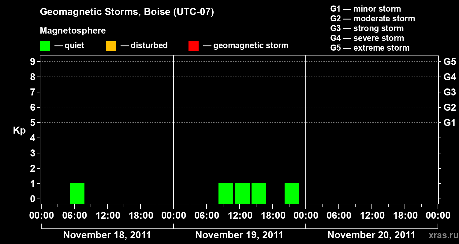 Changes in the geomagnetic index Kp from November 18 to 20, 2011 for mid latitudes