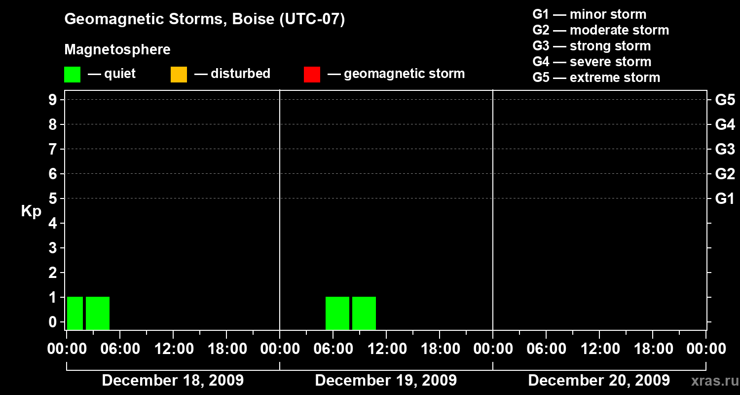 Changes in the geomagnetic index Kp from December 18 to 20, 2009 for mid latitudes