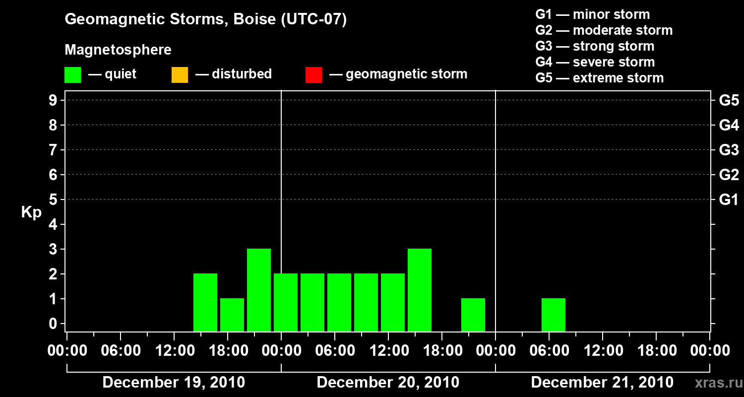 Changes in the geomagnetic index Kp from December 19 to 21, 2010 for mid latitudes