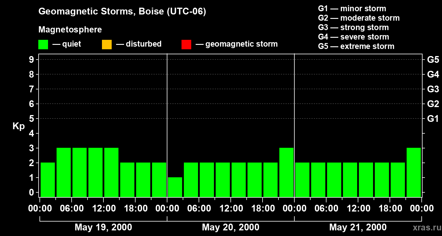 Geomagnetic storms in Boise on May 21, 2000