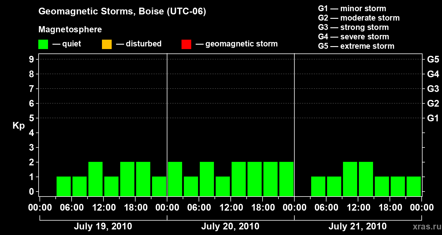 Changes in the geomagnetic index Kp from July 19 to 21, 2010 for mid latitudes