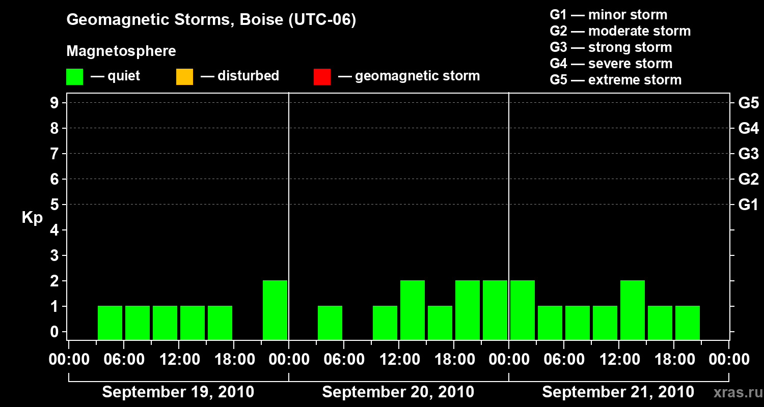 Changes in the geomagnetic index Kp from September 19 to 21, 2010 for mid latitudes