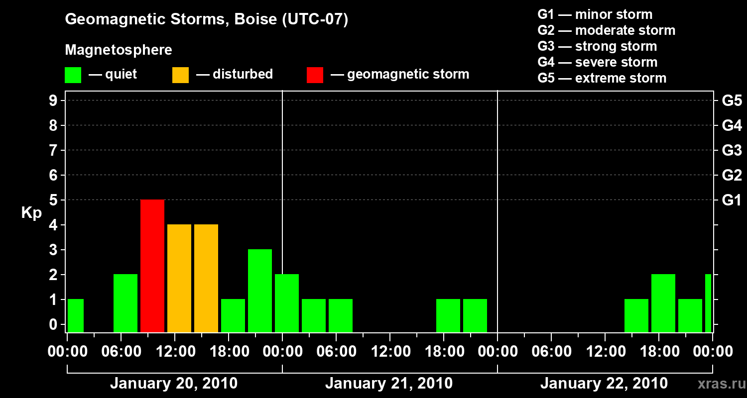 Changes in the geomagnetic index Kp from January 20 to 22, 2010 for mid latitudes
