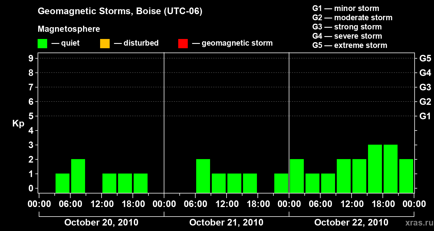 Changes in the geomagnetic index Kp from October 20 to 22, 2010 for mid latitudes