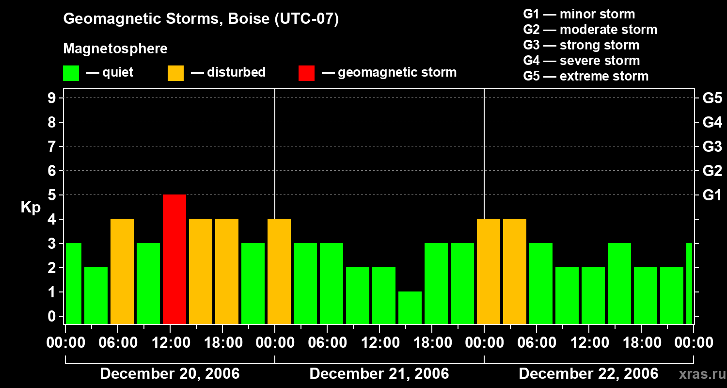 Changes in the geomagnetic index Kp from December 20 to 22, 2006 for mid latitudes