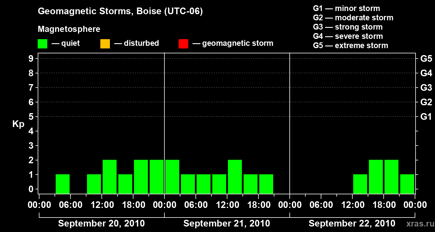 Changes in the geomagnetic index Kp from September 20 to 22, 2010 for mid latitudes