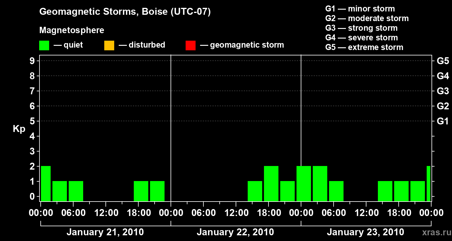 Changes in the geomagnetic index Kp from January 21 to 23, 2010 for mid latitudes