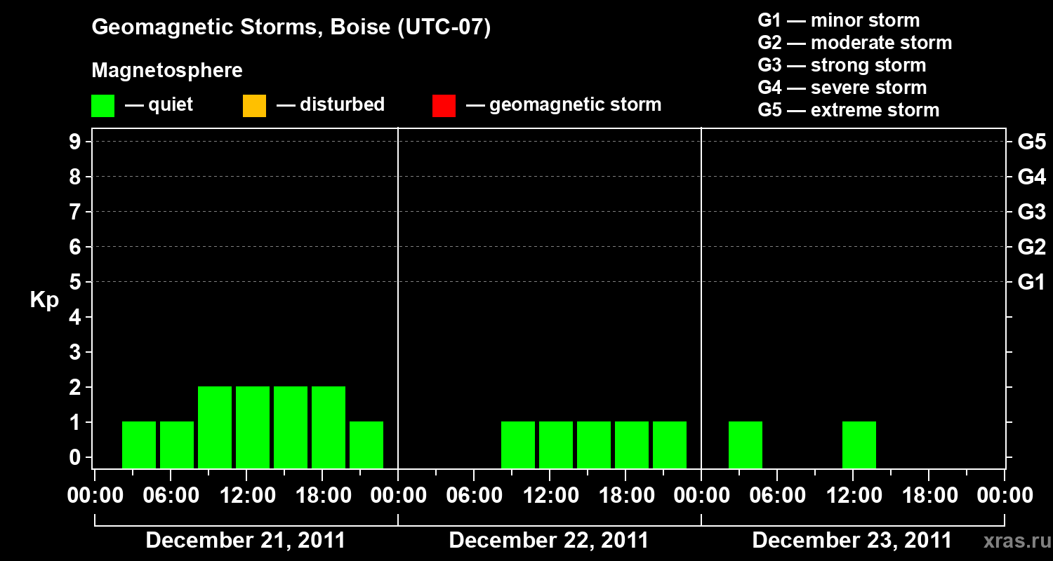 Changes in the geomagnetic index Kp from December 21 to 23, 2011 for mid latitudes