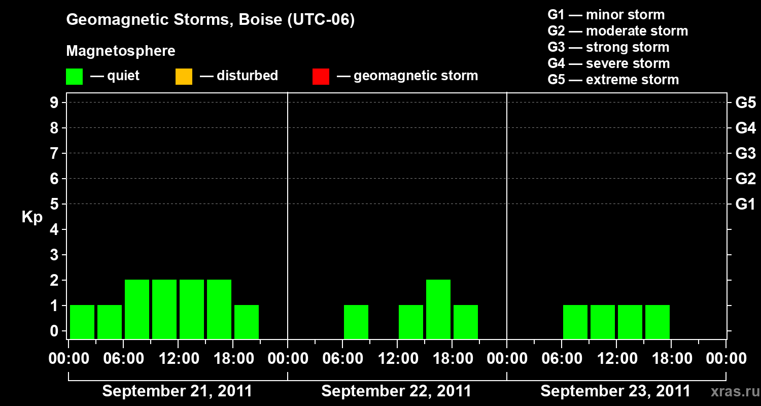 Changes in the geomagnetic index Kp from September 21 to 23, 2011 for mid latitudes