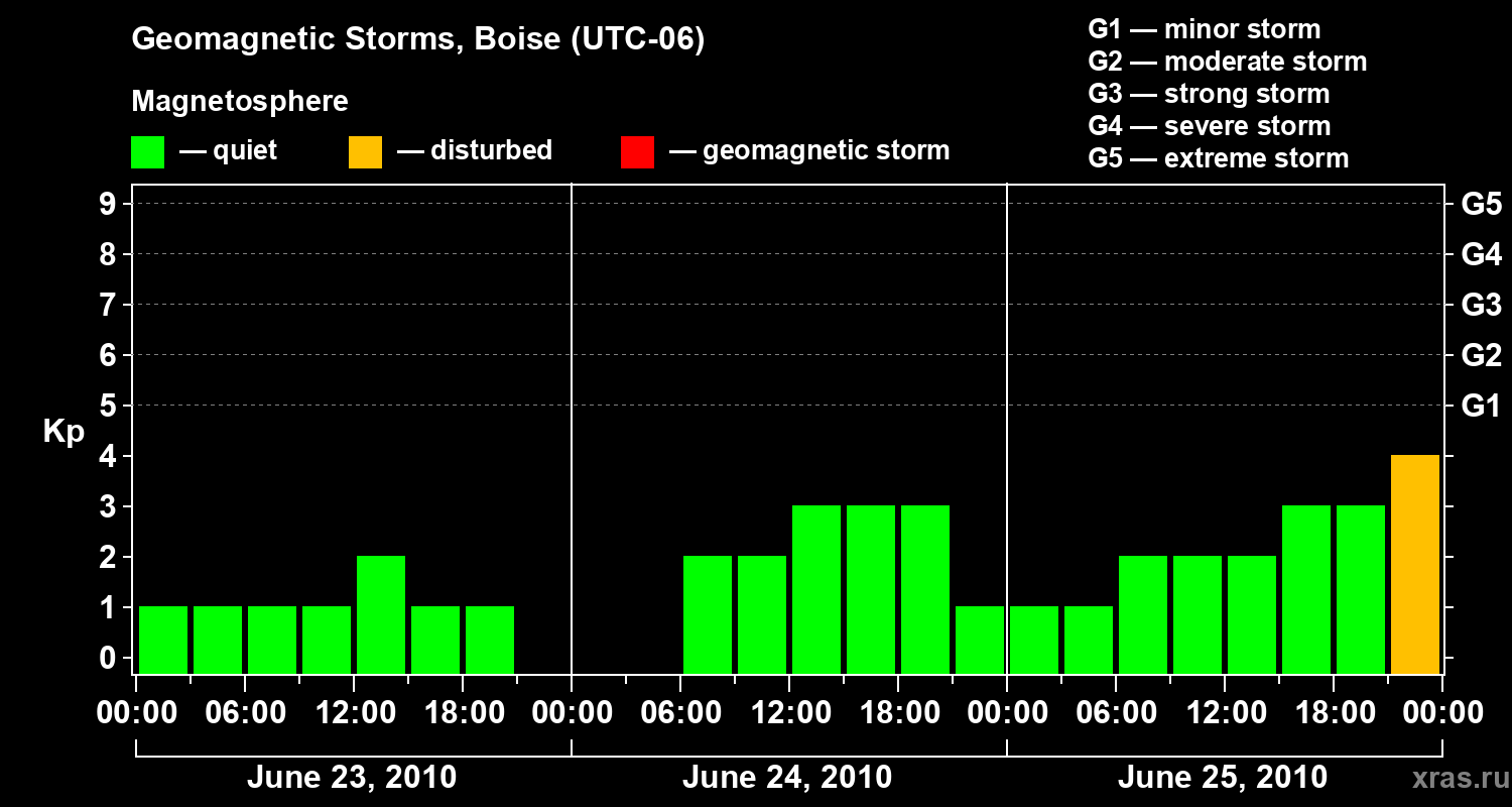 Geomagnetic storms in Boise on Jun 25, 2010