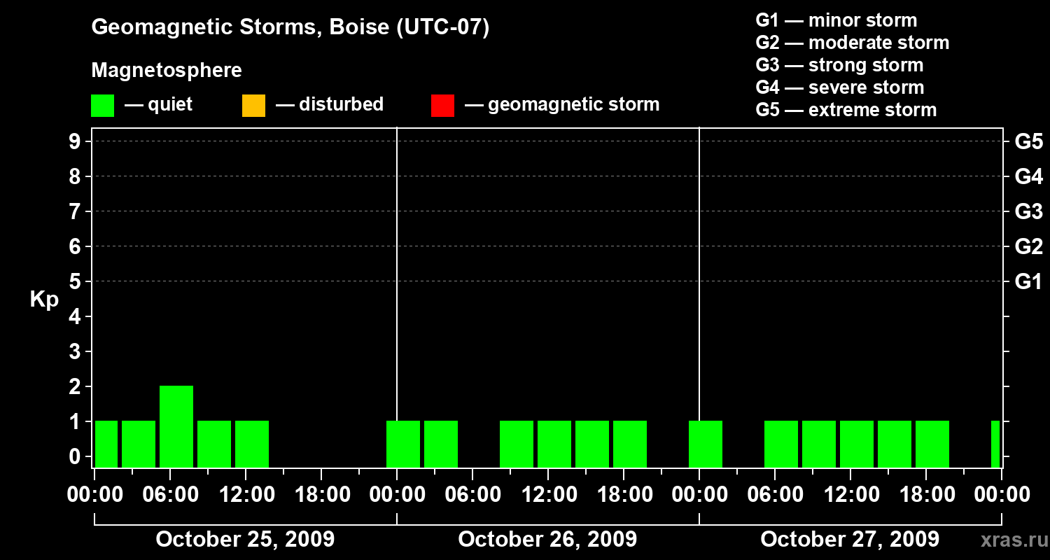 Changes in the geomagnetic index Kp from October 25 to 27, 2009 for mid latitudes